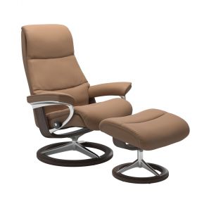 Soft and timeless. The Stressless View has ample cushioning, while retaining a timeless and modern cushion design with sleek contours. Fitted with a longer and slimmer back this recliner is great for those of us who need some extra length in the back. It also has an elegant and comfortable neck support which can be adapted to users of a variety of heights.